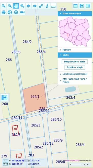Sprzedam działkę budowlaną (264/1) - powierzchnia 1567 m2. MPZP - zabudowa mieszkaniowa jednorodzinna, media w bliskiej ...